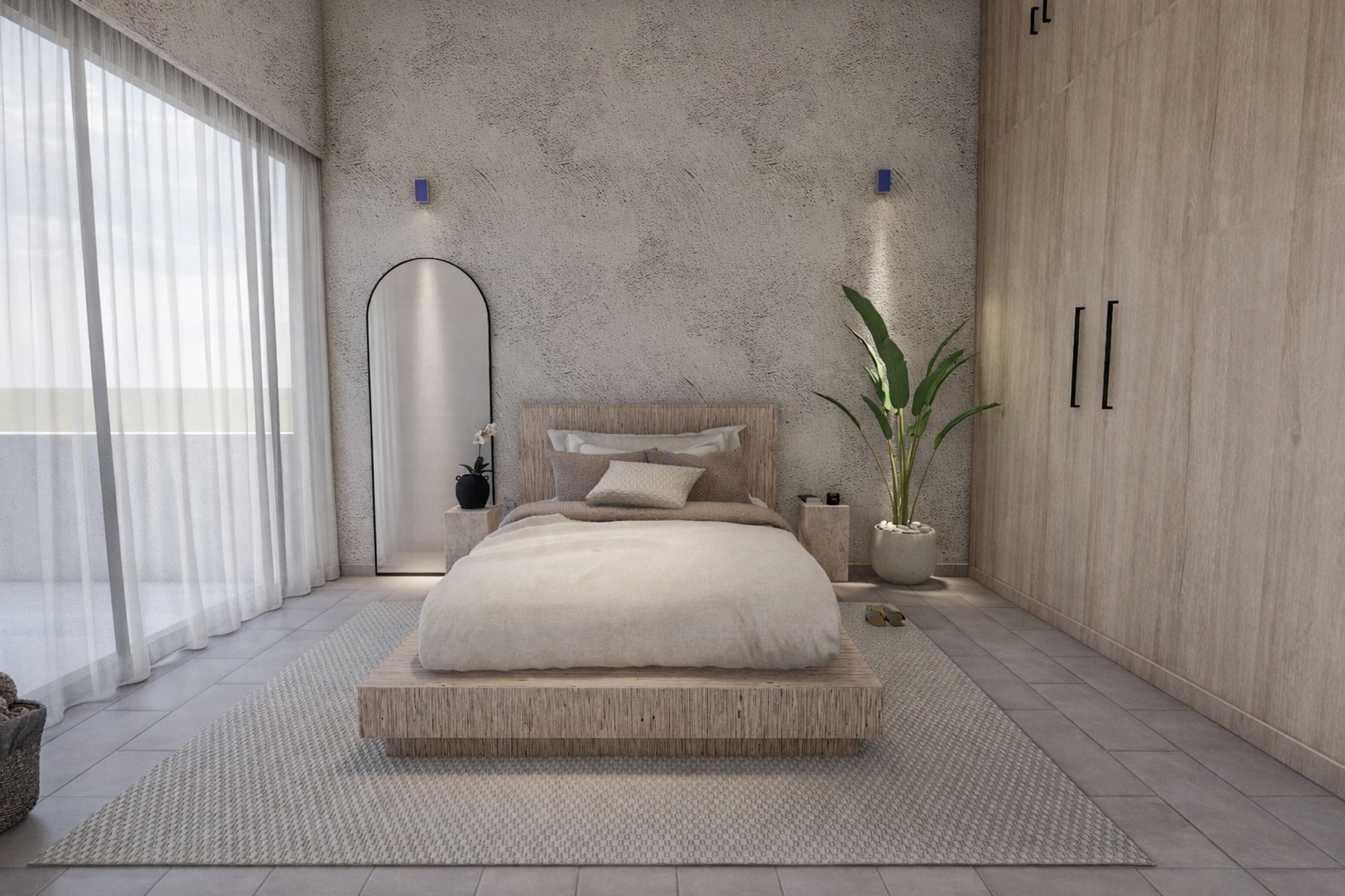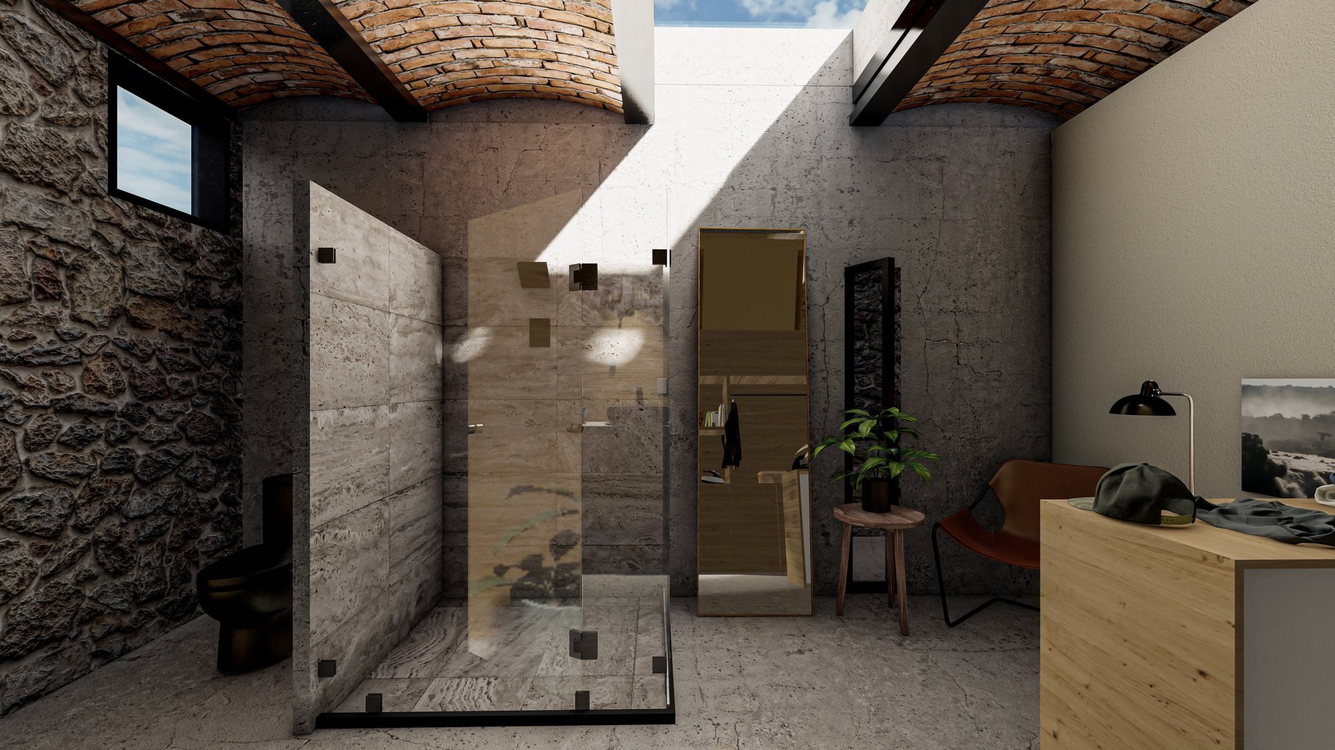 En Casa Clavel, nuestro diseño en León se articula a través de una propuesta industrial que resuelve con precisión la dualidad entre el descanso y una zona de oficina privada, priorizando siempre la conexión con su entorno inmediato. El proyecto se abre estratégicamente para integrar las vistas hacia el cerro y la iglesia principal frente al predio, mientras que al interior, una serie de patios internos funcionan como pulmones de luz y ventilación, creando microclimas de paz que contrastan con la fuerza de los materiales crudos.